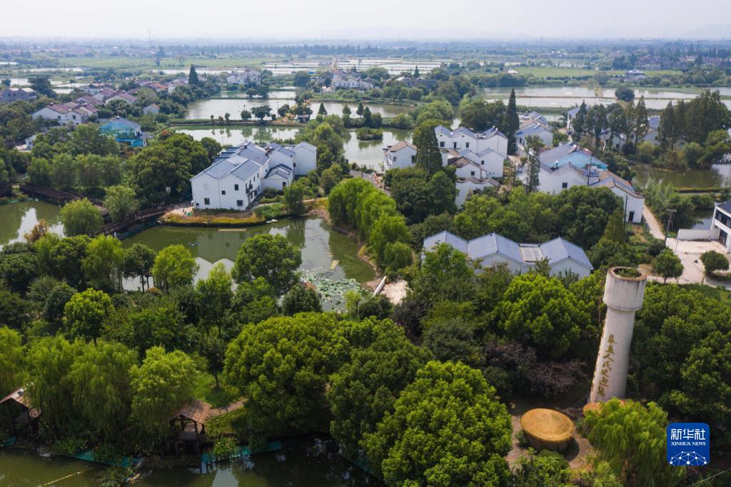 湖州市吳興區東林鎮泉益村通過(guò)全域土地綜合整治建設美麗鄉村,打造具有水鄉特色的綠色生態(tài)旅游村(8月14日攝,無(wú)人機照片)。