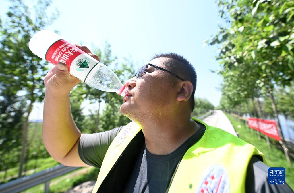 8月15日,應急搶險隊隊員在巡護途中補水。