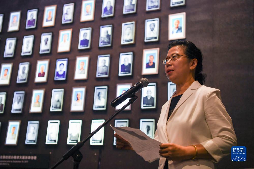 8月15日,南京大屠殺幸存者后代代表、南京大屠殺歷史記憶傳承人曹玉莉在活動(dòng)中發(fā)言。
