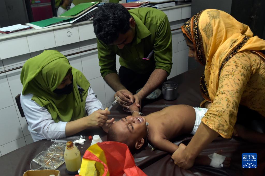 8月14日,一名患登革熱的兒童在孟加拉國達卡一家醫院接受治療。