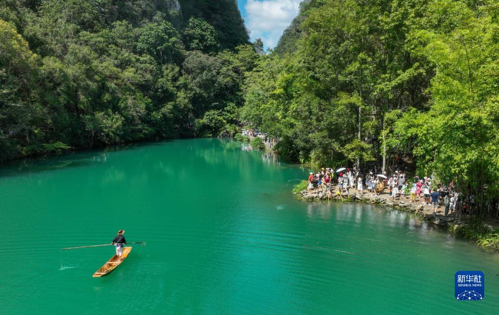 日前,前往貴州省荔波小七孔風(fēng)景區游玩的游客激增,景區各部門(mén)通力合作,服務(wù)游客,每天迎客超過(guò)6.2萬(wàn)人次。