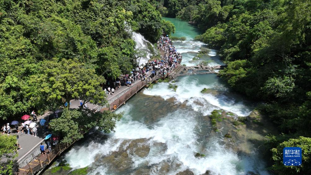日前,前往貴州省荔波小七孔風(fēng)景區游玩的游客激增,景區各部門(mén)通力合作,服務(wù)游客,每天迎客超過(guò)6.2萬(wàn)人次。