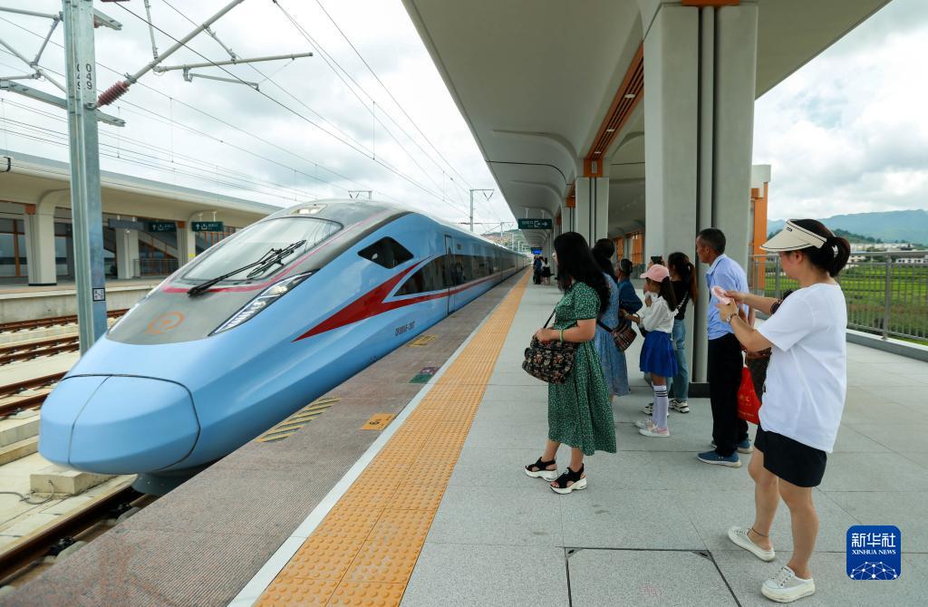 8月15日,旅客在貴南高鐵獨山東站乘坐高鐵前往荔波縣。