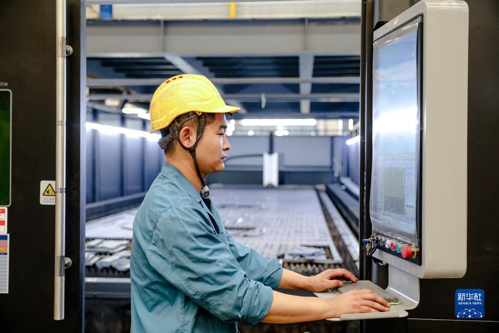 8月15日,在河北衡水高新技術(shù)產(chǎn)業(yè)開(kāi)發(fā)區一家智能裝備制造企業(yè),工人在操作激光切割機。