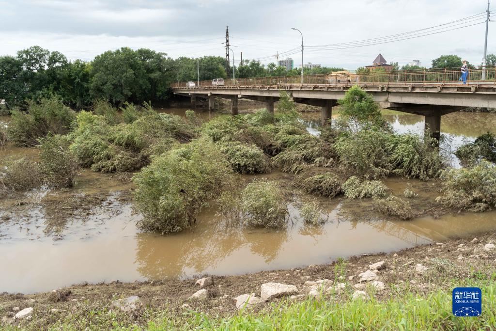 這是8月15日在俄羅斯烏蘇里斯克市拍攝的被洪水淹沒(méi)的河灘。