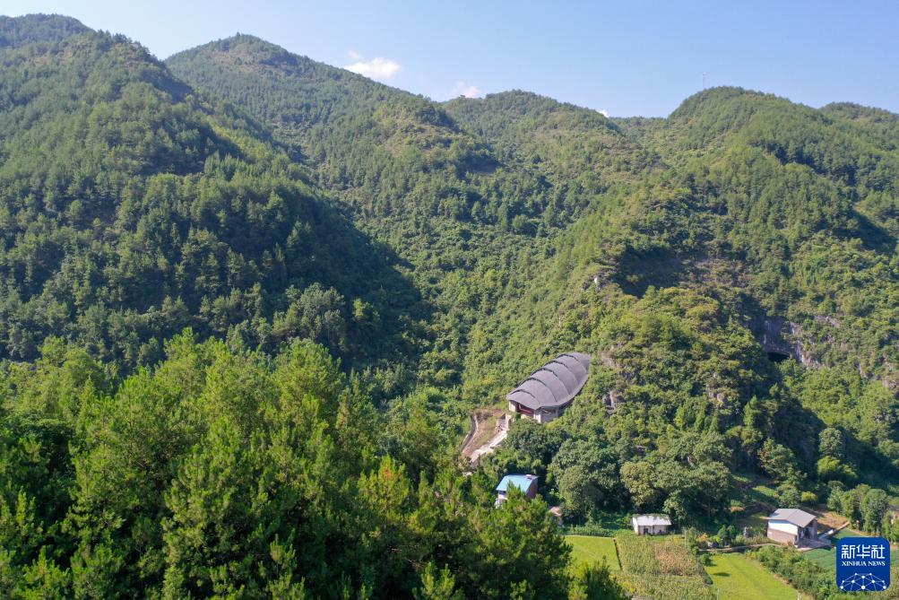 這是8月16日在重慶市巫山縣廟宇鎮拍攝的龍骨坡遺址考古發(fā)掘區(無(wú)人機照片)。
