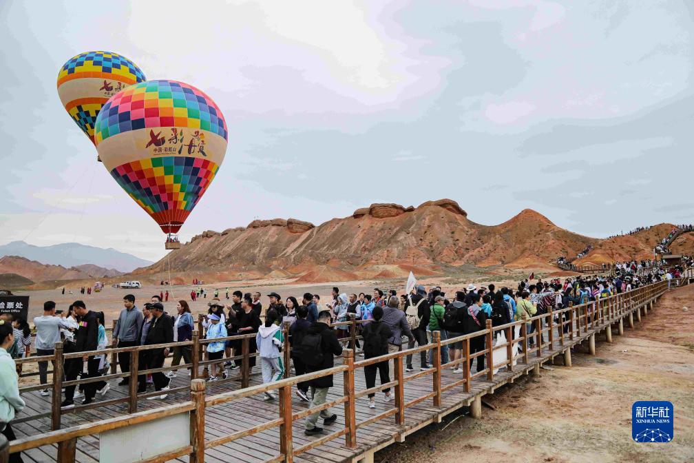 當日,甘肅張掖第三屆張掖七彩丹霞熱氣球嘉年華在七彩丹霞景區拉開(kāi)帷幕。來(lái)自全國各地的熱氣球運動(dòng)員駕乘熱氣球,在七彩丹霞上空進(jìn)行飛行表演,上演熱氣球與丹霞的美麗邂逅。
