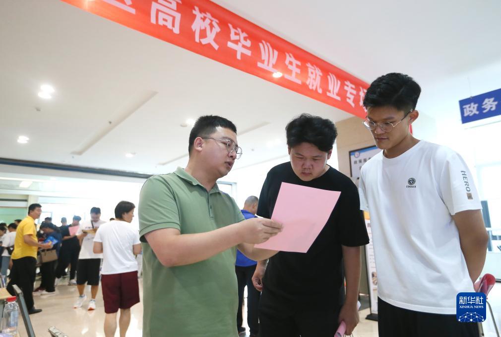 8月18日,大學(xué)生在招聘會(huì )上了解崗位信息。