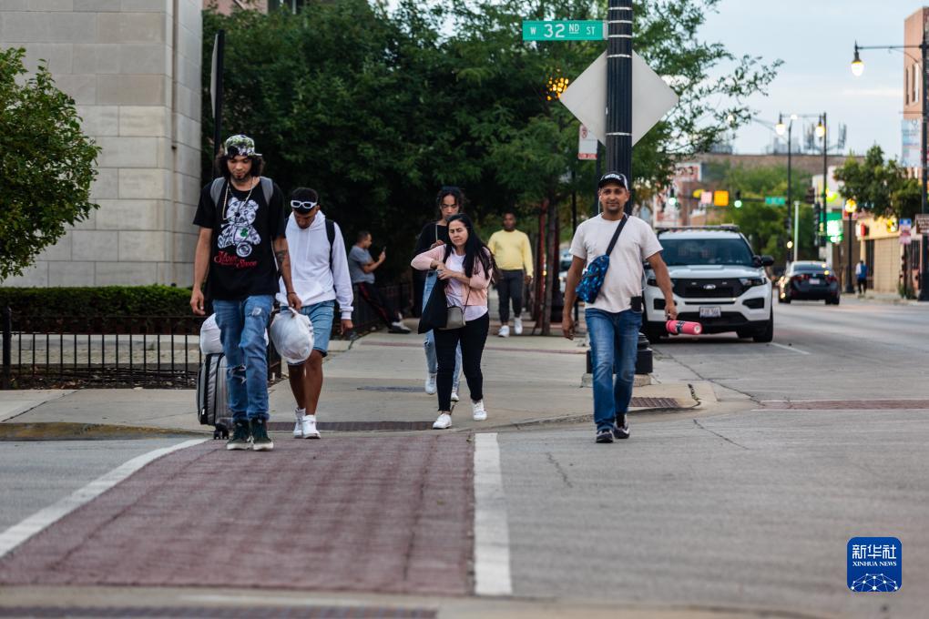 8月17日,在美國伊利諾伊州芝加哥,一些移民因警察局居住空間有限另找住處。