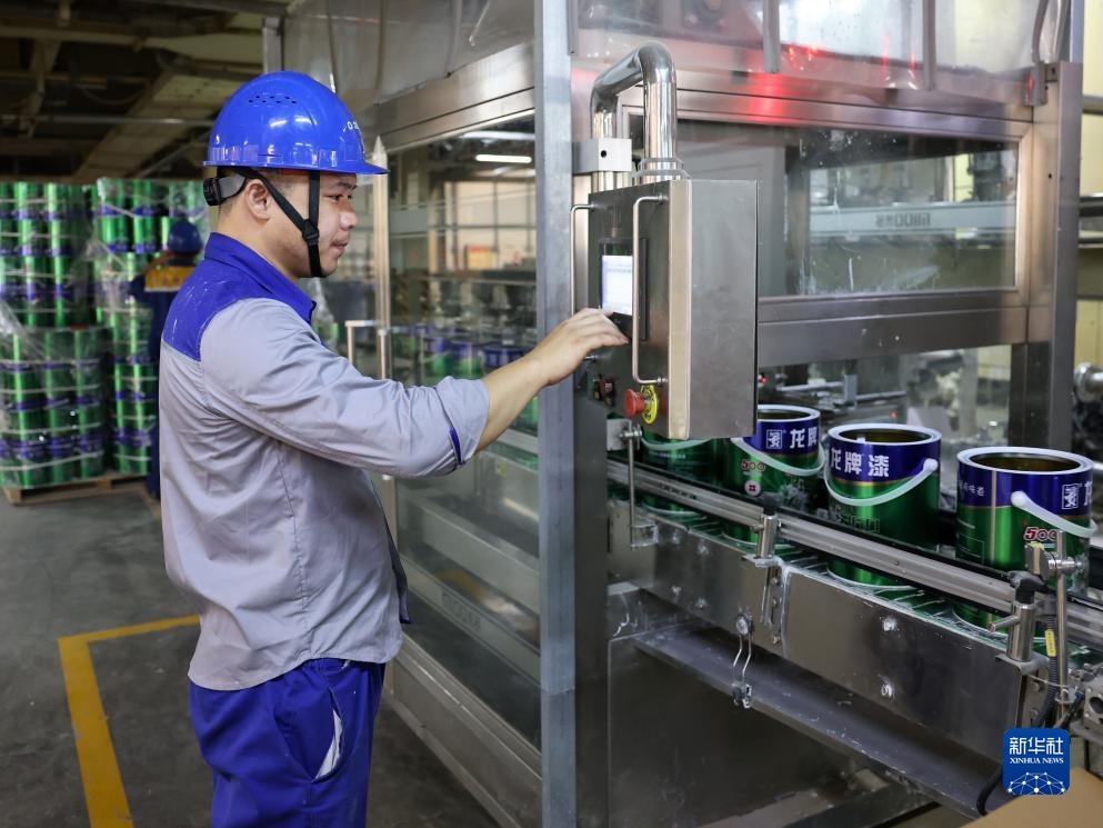 8月19日,工人在龍牌涂料北京有限公司涿州分公司涂料車(chē)間包裝生產(chǎn)線(xiàn)工作。