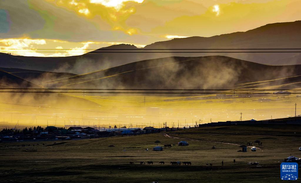 這是8月18日在蒙古國拍攝的泰吉山谷的傍晚。