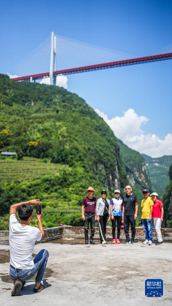 馬選軍幫從廣東來(lái)的游客拍攝合影(8月16日攝)。