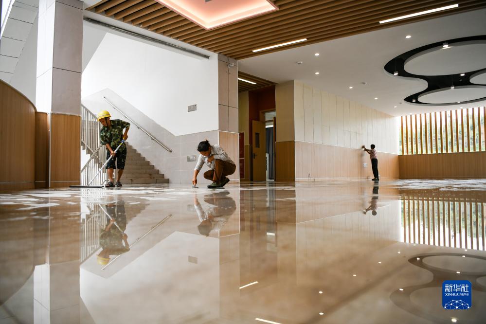 8月20日,在四川省宜賓市第三中學(xué)三江校區(高中部),工人在進(jìn)行保潔工作。