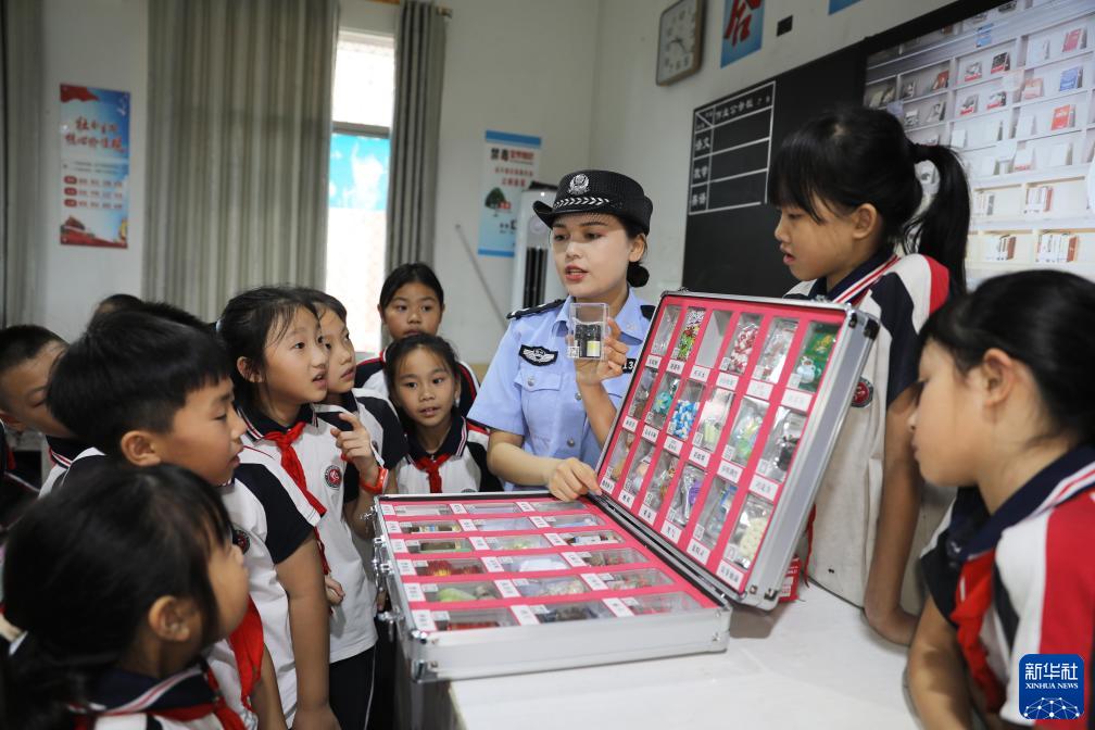 8月21日,民警在貴州省赤水市第三小學(xué)給學(xué)生講解禁毒知識。