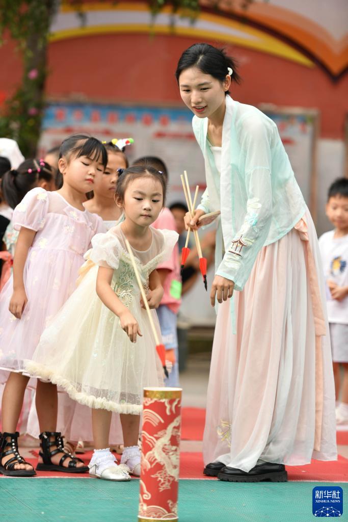 8月21日,貴州省黔東南苗族侗族自治州黃平縣新州鎮第二小學(xué)的師生一起參加投壺趣味活動(dòng)。