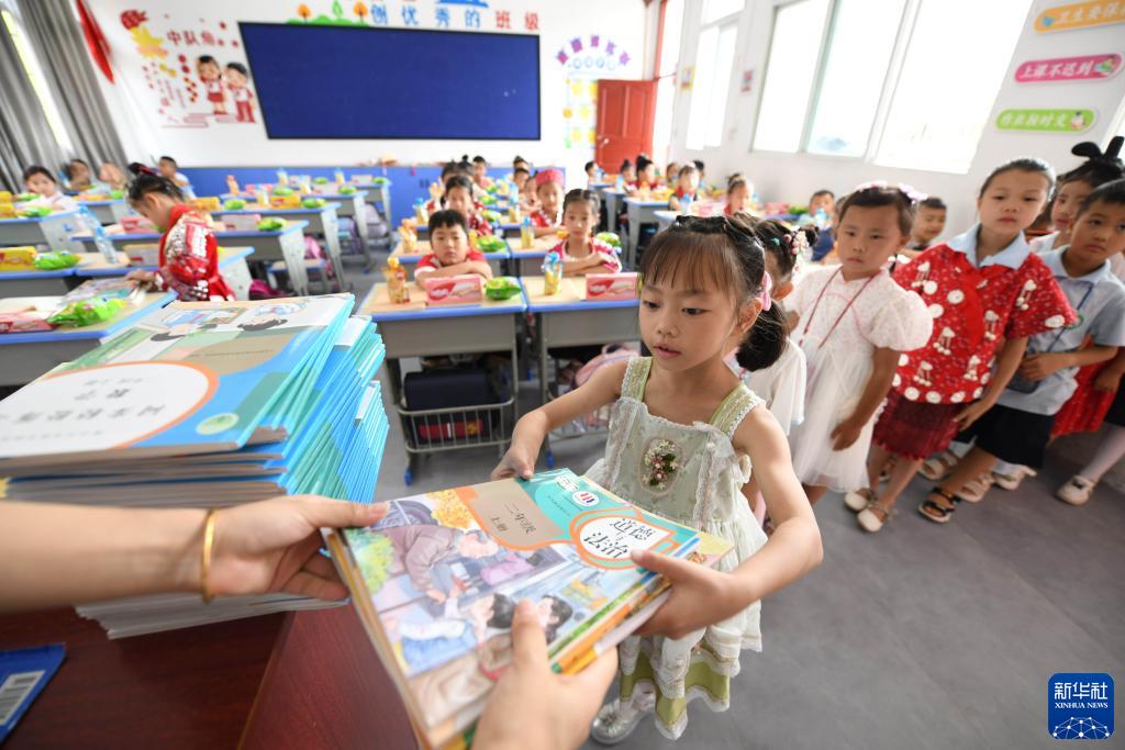 8月21日,學(xué)生在貴州省黔東南苗族侗族自治州黃平縣新州鎮中心小學(xué)領(lǐng)取新課本。