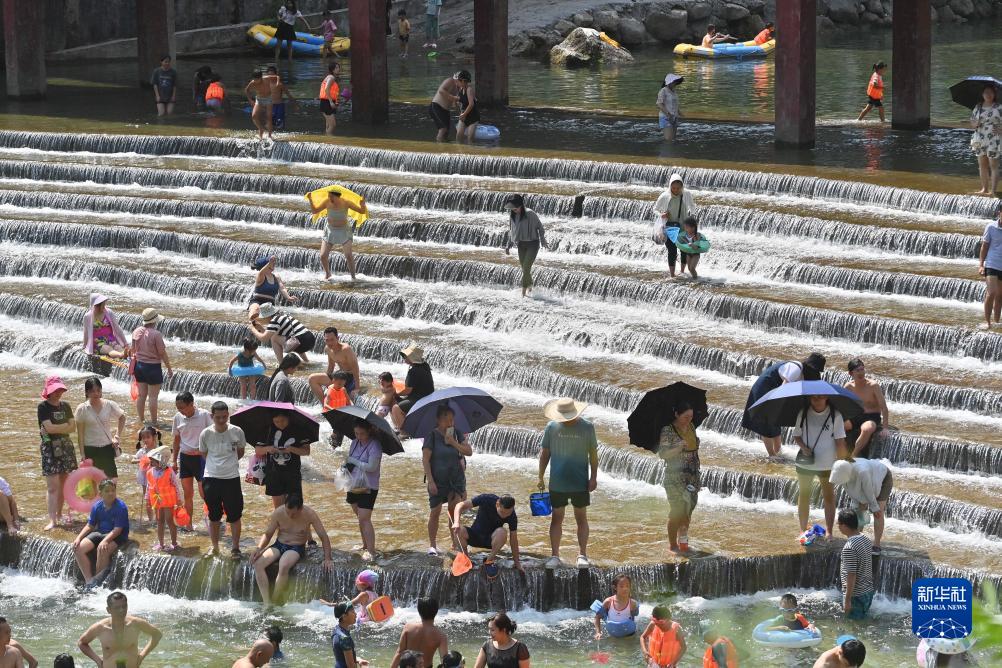 游客在融水苗族自治縣香粉鄉雨卜村戲水消暑(8月19日攝)。近年來(lái),雨卜村充分利用粵桂協(xié)作幫扶資金,通過(guò)整治河道、修繕古建筑等,發(fā)展鄉村旅游產(chǎn)業(yè),打造鄉村旅游示范村。