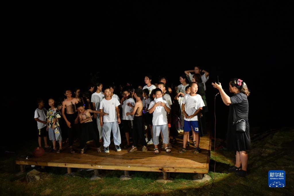 8月20日,周燕(右)向觀(guān)眾介紹參與演出的孩子們。