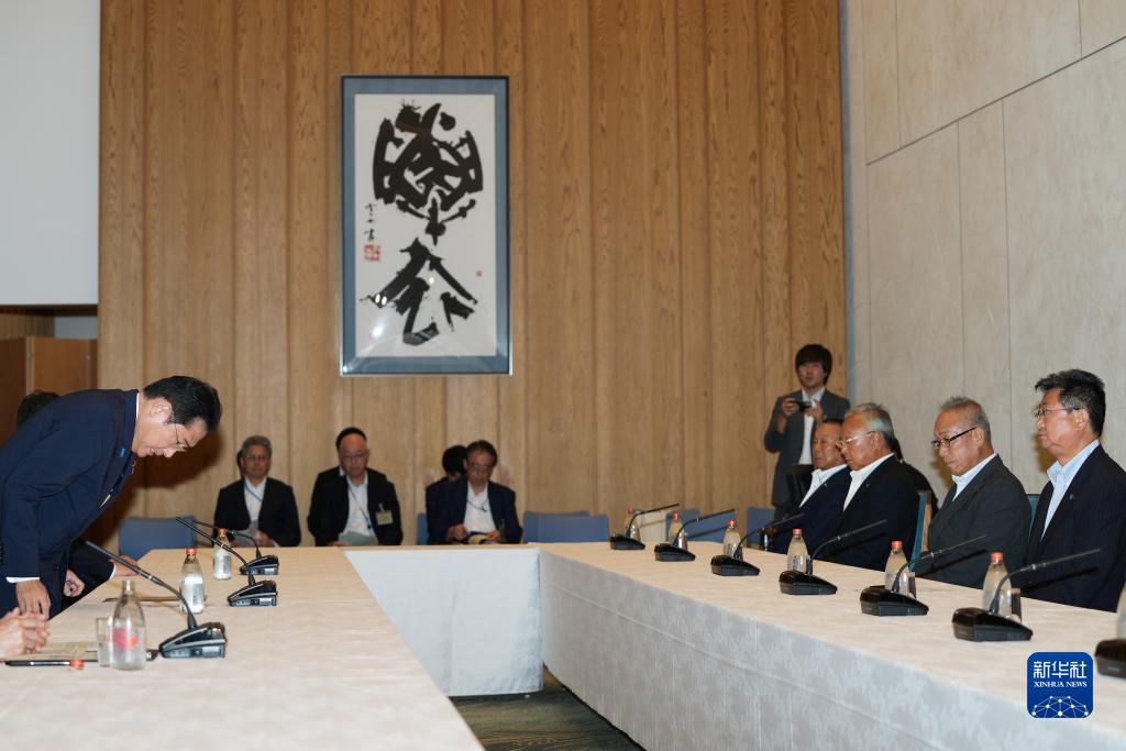 8月21日,在日本東京首相官邸,日本首相岸田文雄(左一)會(huì )見(jiàn)日本全國漁業(yè)協(xié)會(huì )聯(lián)合會(huì )會(huì )長(cháng)坂本雅信(右一)一行。