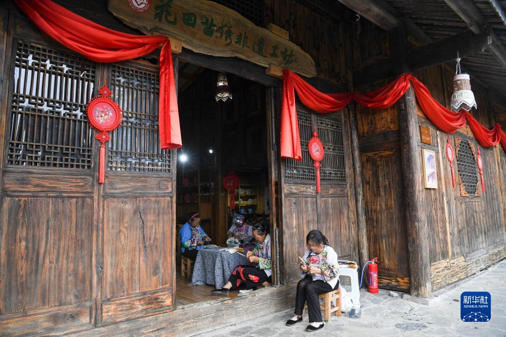 8月20日,酉陽(yáng)縣花田鄉何家巖村村民在制作苗繡。