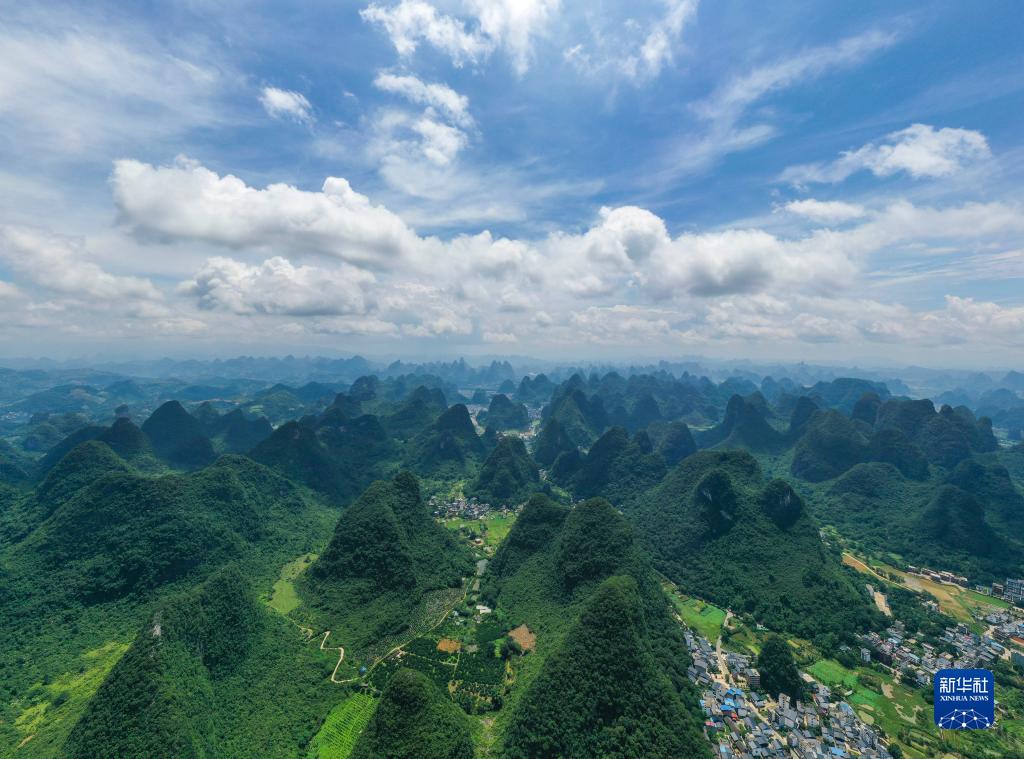 這是2020年7月4日拍攝的廣西陽(yáng)朔縣風(fēng)光(無(wú)人機照片)。