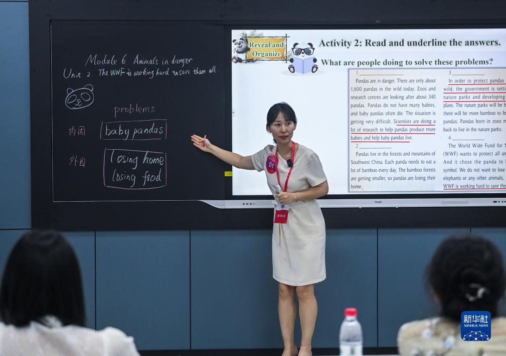 8月22日,中學(xué)英語(yǔ)組的一名教師在進(jìn)行教學(xué)展示。