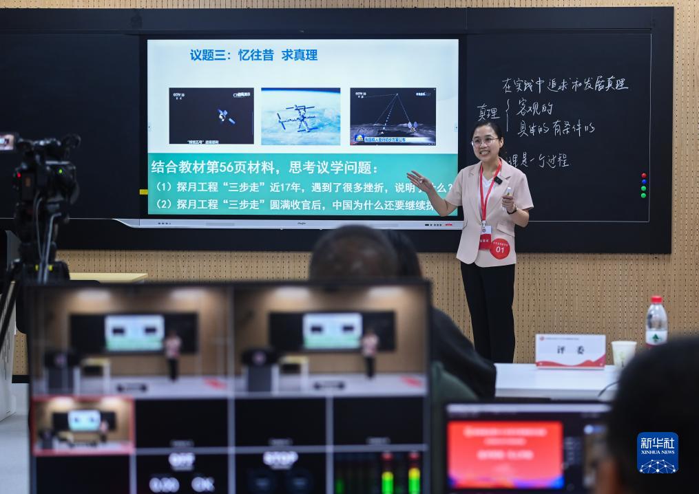 8月22日,中學(xué)思想政治組的一名教師在進(jìn)行教學(xué)展示。