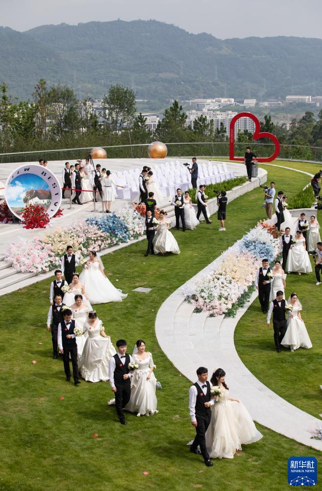 當日是七夕,來(lái)自四川省宜賓市三江新區33對新人在三江新區“三江之眼”舉辦了“為愛(ài)奔赴·幸福三江”主題集體婚禮。
