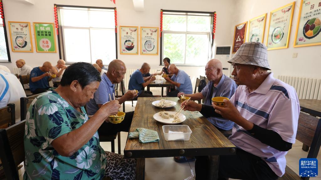 8月22日,老人們在青縣金牛鎮大鵓鴿留村孝老食堂用餐。