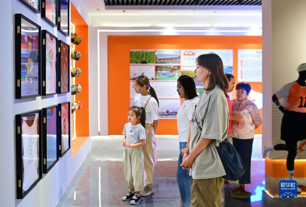 8月22日,觀(guān)眾在昂素鎮鄉村排球文化展覽館參觀(guān)展覽。