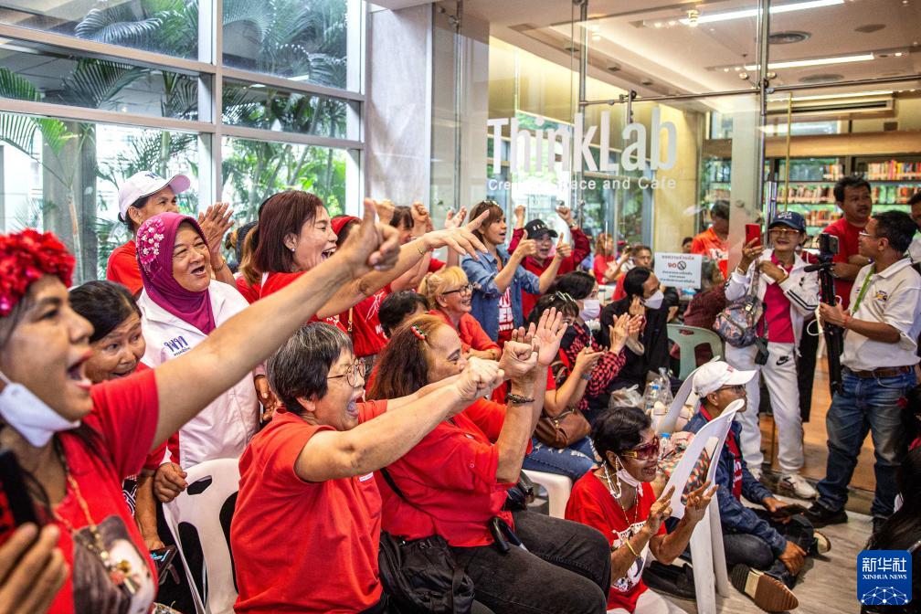 8月22日,民眾在泰國曼谷慶祝賽塔·他威信當選新一任泰國總理。