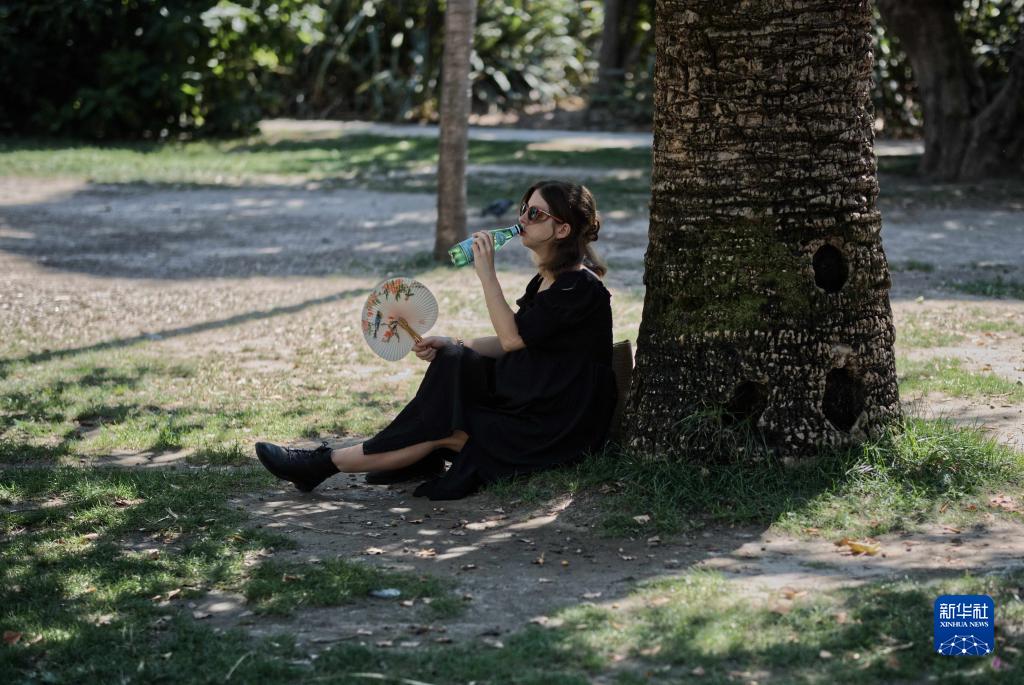 8月22日,在法國南部城市尼斯,一名女子在樹(shù)蔭下消暑。