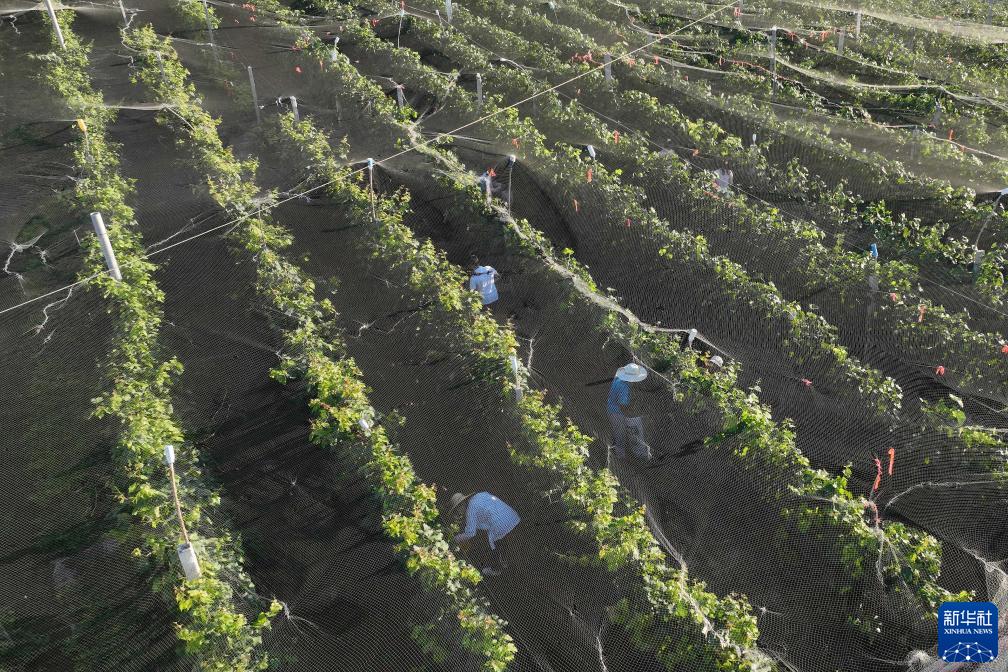 8月22日拍攝的吳橋縣安陵鎮窯廠(chǎng)店村吳橋縣勝彥糧棉種植專(zhuān)業(yè)合作社葡萄園(無(wú)人機照片)。