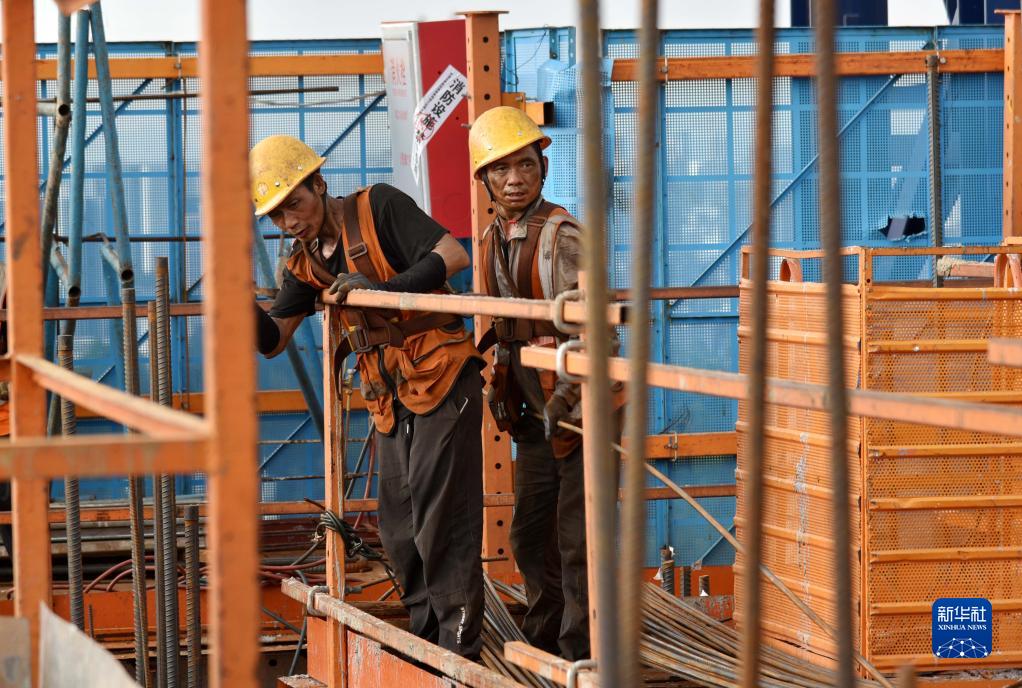 8月22日,工人在深圳城建羅湖超高層項目塔樓作業(yè)。