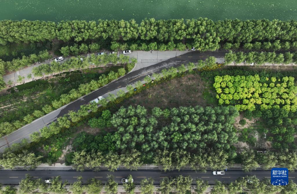 8月22日拍攝的唐山市豐南區城區通往南孫莊鎮的唐津運河景觀(guān)路(無(wú)人機照片)。