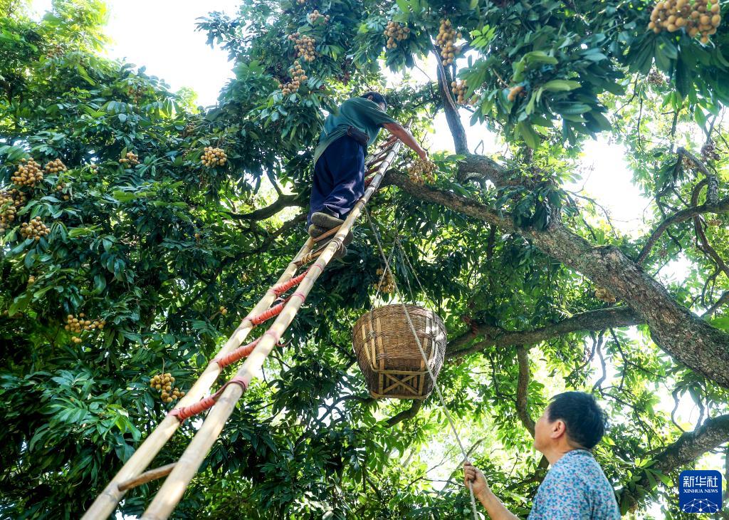 8月23日,四川省瀘州市江陽(yáng)區黃艤鎮羅灣村村民在采摘桂圓。
