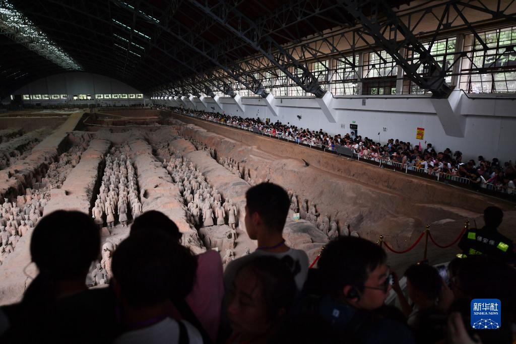 暑期將盡,但位于陜西西安臨潼區的秦始皇兵馬俑博物館旅游熱度不減,前來(lái)參觀(guān)的游客摩肩接踵。