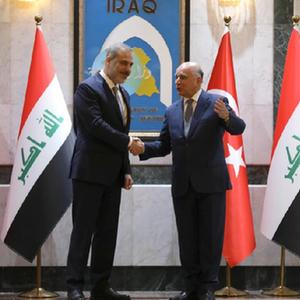 8月22日,伊拉克外長(cháng)侯賽因(右)在巴格達會(huì )見(jiàn)到訪(fǎng)的土耳其外長(cháng)菲丹。