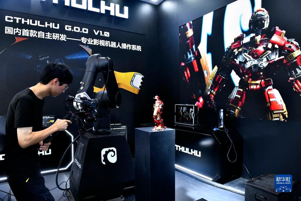 8月24日,在青島召開(kāi)的2023年中國網(wǎng)絡(luò )視聽(tīng)精品創(chuàng )作峰會(huì )上,智能視聽(tīng)沉浸式體驗展區在展示專(zhuān)業(yè)影視機器人。