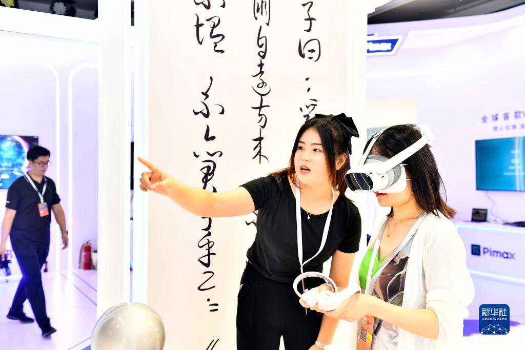 8月24日,在青島召開(kāi)的2023年中國網(wǎng)絡(luò )視聽(tīng)精品創(chuàng )作峰會(huì )上,與會(huì )嘉賓在智能視聽(tīng)沉浸式體驗展區體驗新技術(shù)新應用。