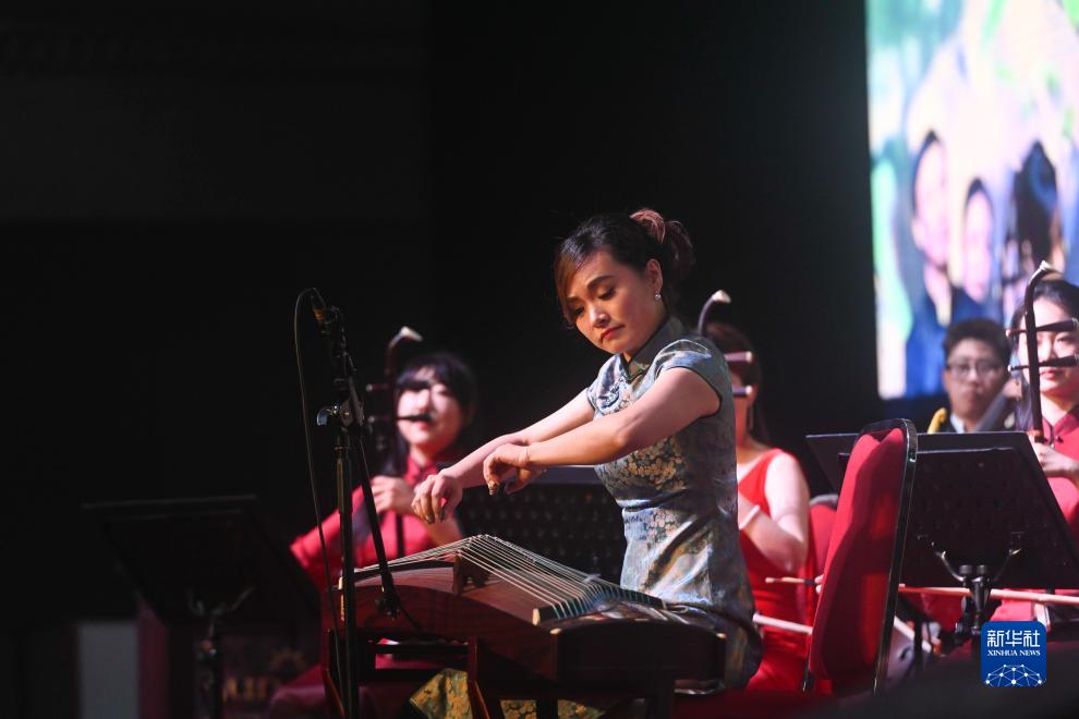 8月24日,在印度尼西亞雅加達太陽(yáng)城,演奏者表演古箏獨奏《秦桑曲》。