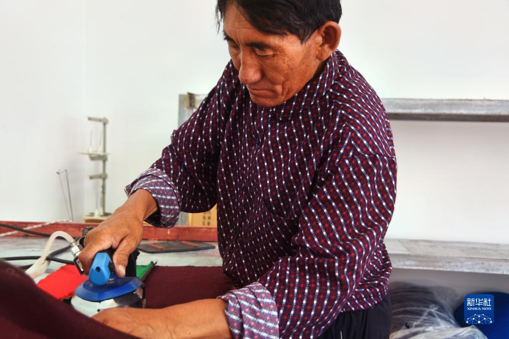 一位村民在熨燙藏袍(8月24日攝)。