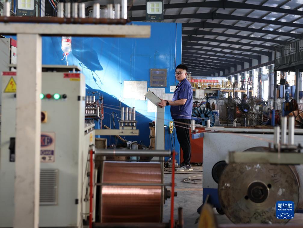 8月24日,工人在河北省邢臺市寧晉縣金世紀電纜集團有限公司生產(chǎn)車(chē)間工作。