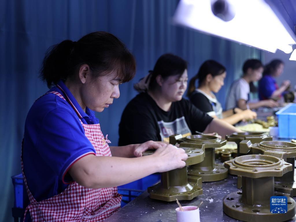 8月24日,工人在河北省邢臺市寧晉縣河北聯(lián)碩機械制造有限公司蠟模車(chē)間工作。