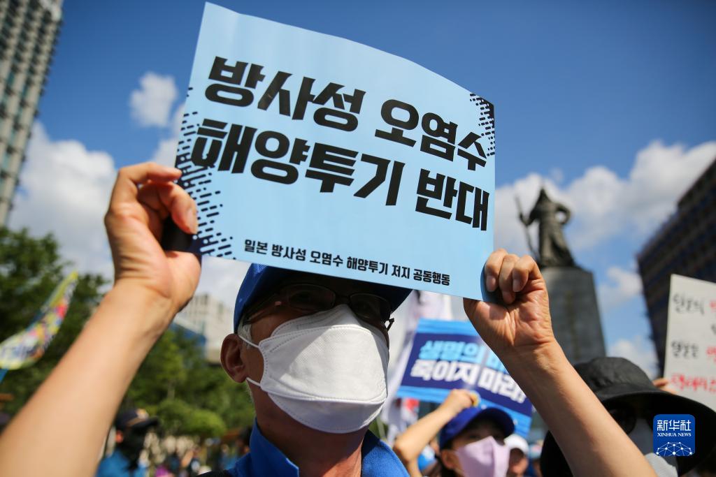 當日,韓國最大在野黨共同民主黨成員和眾多市民聚集在首爾光化門(mén)廣場(chǎng),手舉標語(yǔ)進(jìn)行示威游行,抗議日本核污染水排海。日本政府24日啟動(dòng)福島核污染水排海,這一決定遭到國際社會(huì )的批評和反對。