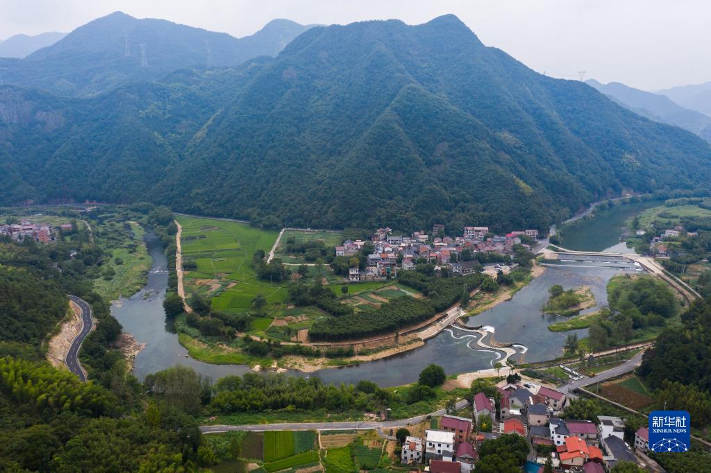 8月25日,空中俯瞰湖源鄉石龍村壺源溪流域(無(wú)人機照片)。