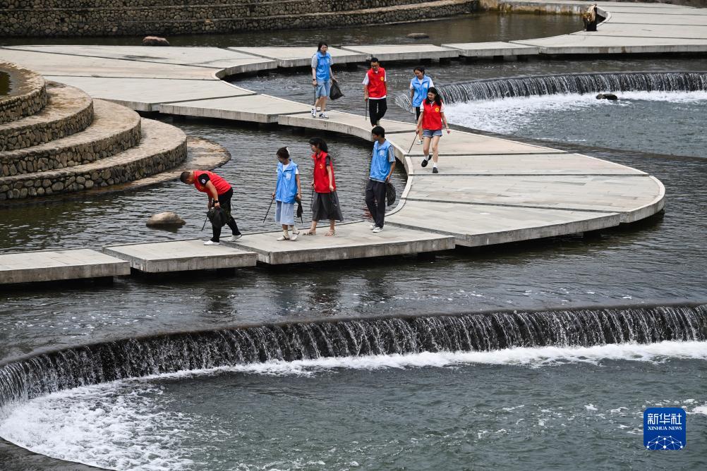 8月25日,青年黨員志愿者和河長(cháng)們在湖源鄉石龍村同心壩清理垃圾。