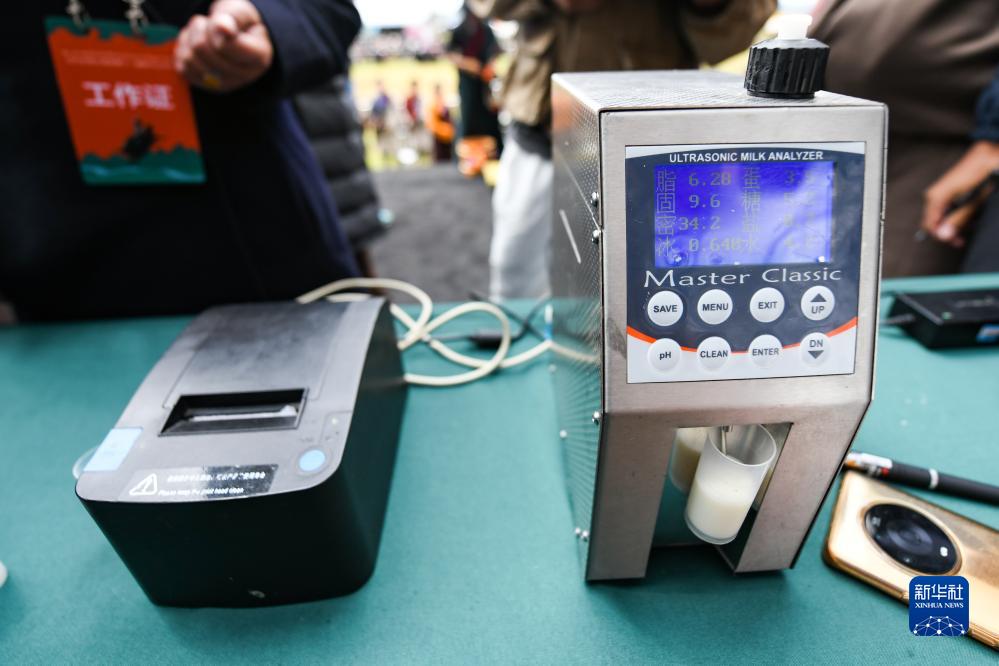 8月25日,在四川省阿壩藏族羌族自治州紅原縣雅克音樂(lè )牧場(chǎng),現場(chǎng)工作人員在化驗牦牛奶的各種營(yíng)養成分含量。