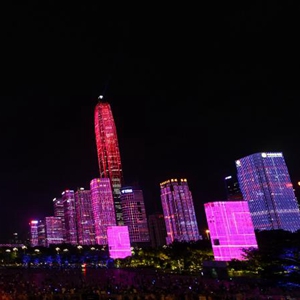 8月25日晚,深圳市中心區燈光表演慶祝特區成立43周年。