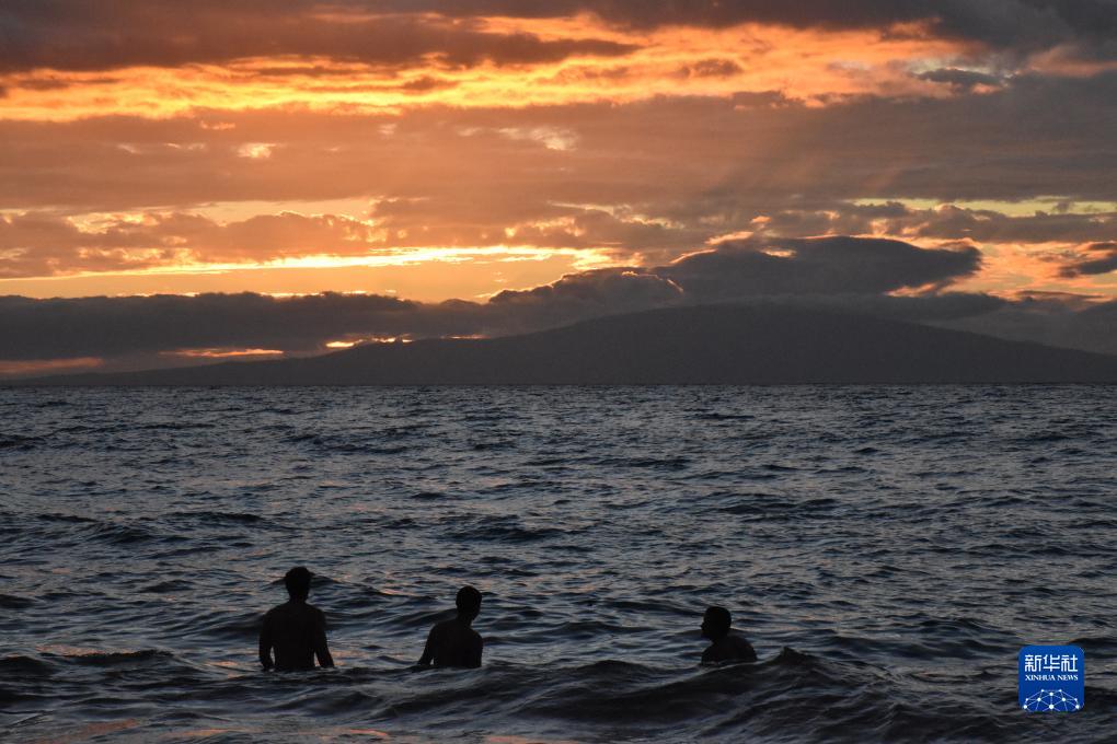 8月21日,人們在美國夏威夷毛伊島的海邊觀(guān)看日落。